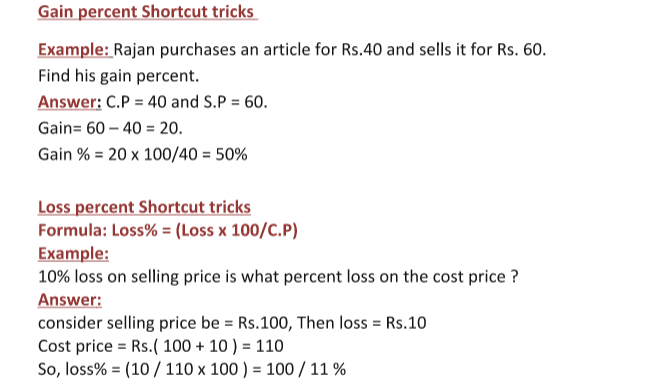 SHORT TRICKS OF PROFIT AND LOSS