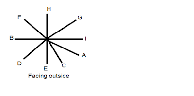 Nine friends A, B, C, D, E, F, G, H and I are sitting around a circle and facing opposite to the centre but not necessarily in the same order.