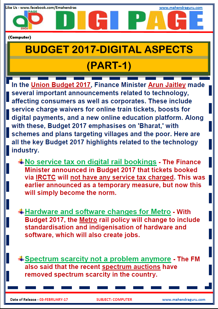 DP | BUDGET 2017 - DIGITAL ASPECTS | 3 - FEB - 17