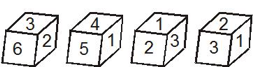 प्रश्न आकृति में एक पासे की चार स्थितियाँ दी गयी हैं। यदि '6' अंक शीर्ष पर हो तो तल पर कौन सा अंक होगा?