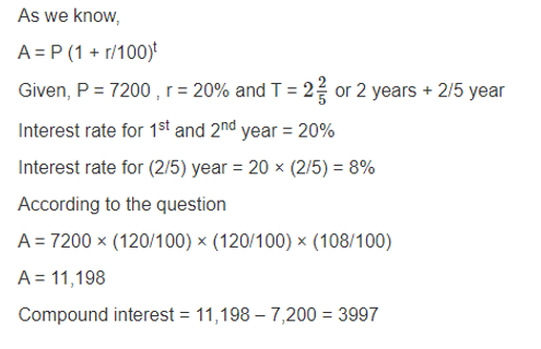 Q.10. Ravi borrowed Rs.7200 from Kavi at 20% p.a. for