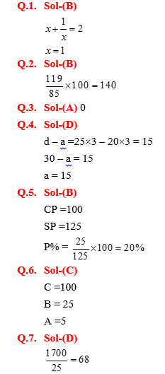 a,b,c का औसत 20 और b,c,d का औसत 25 है, यदि D = 30 हैं, तो A का मान है