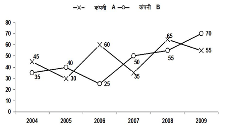 2004 में कंपनी A का उत्पादन, 2009 में कंपनी B के उत्पादन का लगभग कितना प्रतिशत है?