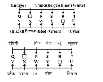 दो समानांतर पंक्तियों में बारह सीटें हैं जिनमें से प्रत्येक में पांच लोग हैं। आसन्न व्यक्तियों के बीच एक समान दूरी है। पंक्ति 1 में, P, Q, R, S और T दक्षिण की ओर और पंक्ति 2 में, U, V, W, X और Y उत्तर की ओर है। प्रत्येक पंक्ति में एक सीट खाली है। इसलिए, दी गई बैठने की व्यवस्था में, एक पंक्ति में बैठा प्रत्येक सदस्य दूसरी पंक्ति के किसी अन्य सदस्य का सामना करता है। सभी को अलग-अलग रंग जैसे ब्लैक, व्हाइट, सियान, इंडिगो, पिंक, बेज, ब्लू, ब्राउन, रेड और ग्रीन पसंद हैं।