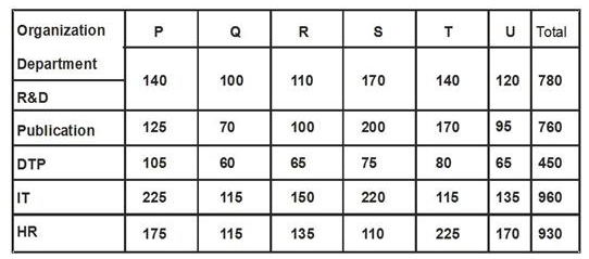 संगठन R और U के कुल कर्मचारियों की संख्या में क्या अन्तर है ?