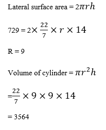 एक बेलन का पार्श्व पृष्ठ क्षेत्रफल 792 वर्ग सेमी^2 है । यदि इसकी ऊँचाई 14 सेमी है , तो उसका आयतन(घन सेमी में ) ज्ञात कीजिये ?