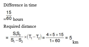 यदि मैं 4 किमी./घंटा की गति से चलॅू , तो मेरी बस 10 मिनट पहले छूट जाती हैं। यदि मै 5 किमी./घंटा की गति से चलॅू तो मैं बस के लिए 5 मिनट पहले पहुँच जाता हूँ। तदनुसार, मुझे बस -अड्डे तक जाने के लिए कितना चलना होता है?