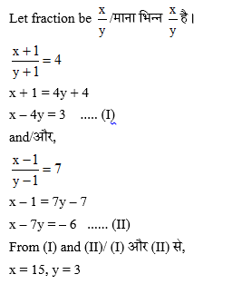Q. 6. A fraction becomes 4 when 1 is added to both the numerator and the denominator and it becomes 7 when 1 is subtracted from both the numerator and the denominator. The numerator of the fraction is: